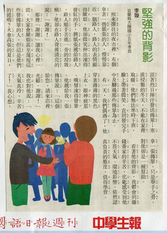 恭喜五年孝班-李璇成為國語日報小作家